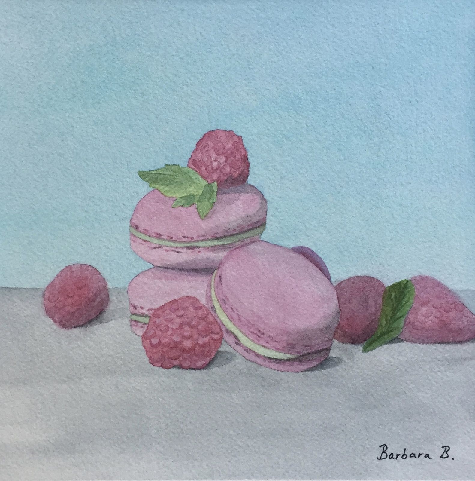 En plus de mes œuvres personnelles, je réalise des commandes sur mesure basées sur les photos de mes client·e·s. Je peins sur du papier Arches 300g, utilise plus d’une quarantaine de pinceaux et travaille avec les couleurs de la marque Schminke pour donner vie à mes créations.