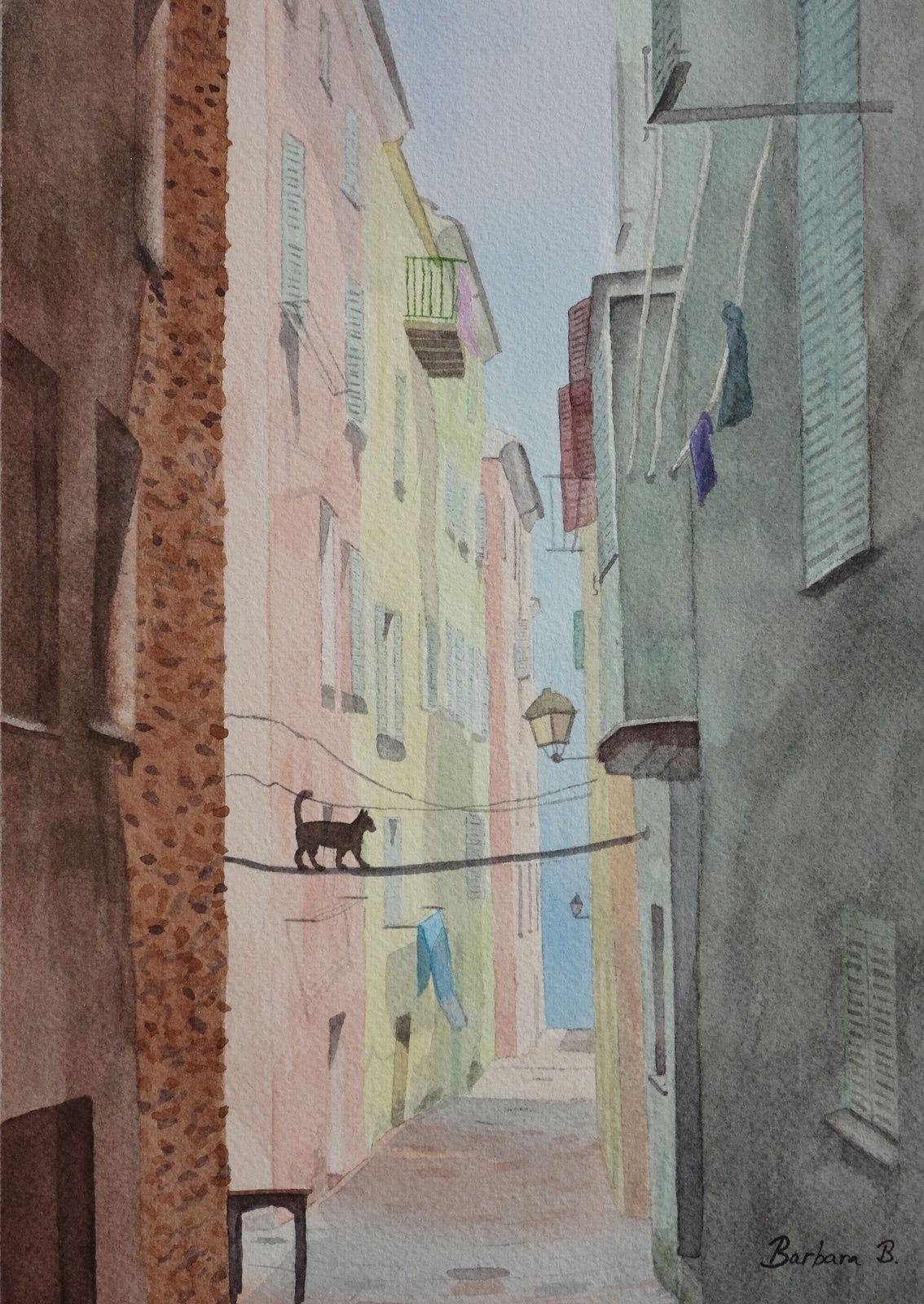 Aquarelle peinte entièrement par mes soins sur papier Arches 300g, peintures Schmincke (grande qualité qui permet une haute résistance aux épreuves du temps). Les couleurs peuvent varier légèrement. Finition avec cadre sur demande.