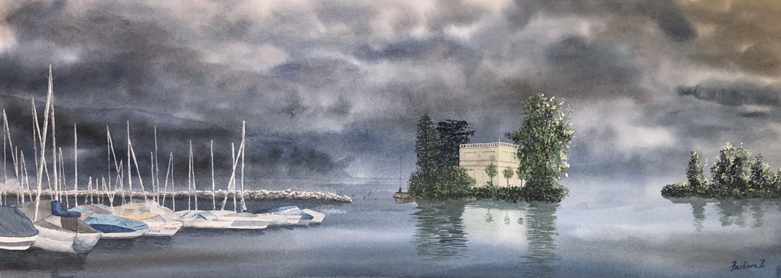 J’ai pris une photo un soir d’hiver vers Rivaz, en Suisse. J’ai rajouté un bateau à voile car je voulais rajouter un élément. Souvent, je rajoute un voilier sur mes compositions de lac. J’en ai fait quelques fois il y a des années et c’était ne belle découverte!
