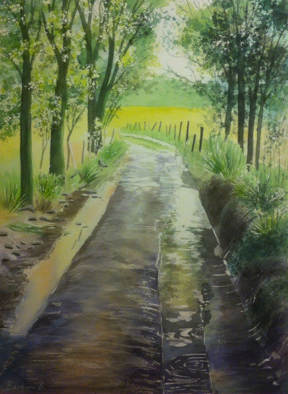 J’ai suivi un cours avec la talentueuse artiste Anna Ivanova. J’aime beaucoup sa technique qui change un peu de mon travail habituel, car j’ai mouillé la feuille des 2 côtés puis je l’ai posés sur une plaque en plexiglas avant de peindre.