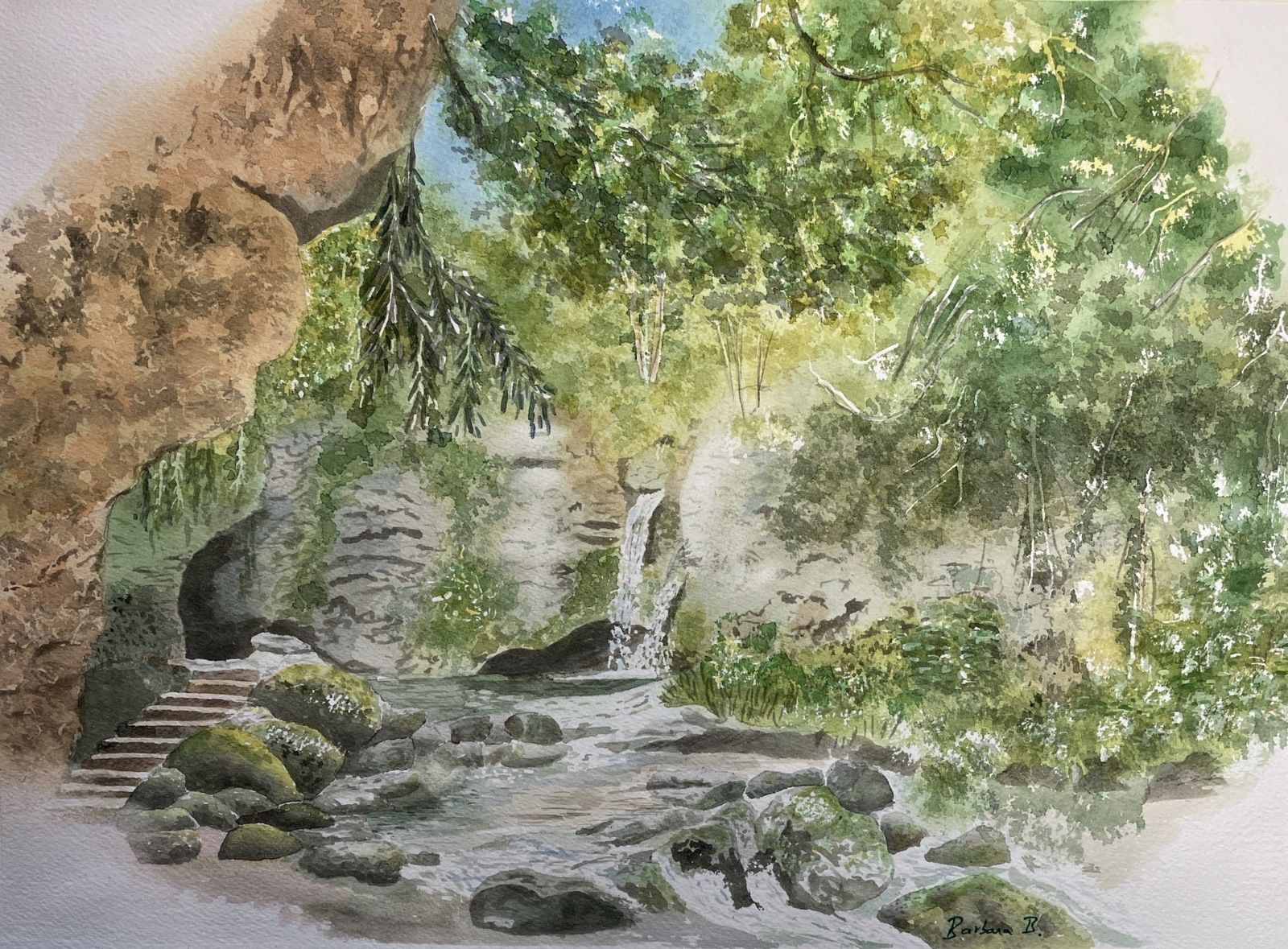 Aquarelle peinte entièrement par mes soins sur papier Arches 300g, peintures Schmincke (grande qualité qui permet une haute résistance aux épreuves du temps). Les couleurs peuvent varier légèrement.